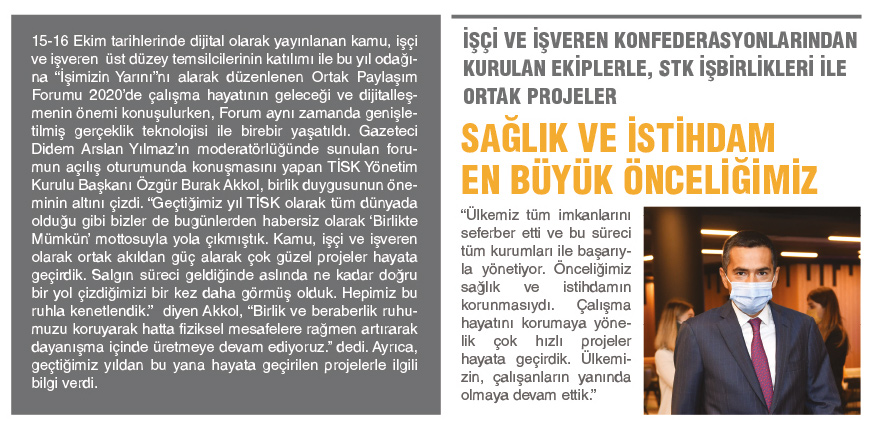 konusunu sahiplendi ve Türkiye’deki çalışma hayatının geleceğine
